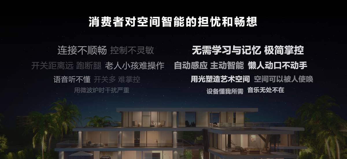 过去的智能家居大多是以智能单品为核心的单点智能,系统简单,场景初阶,连接上多以“点控点”为主,缺乏系统级场景联动。因此尽管智能设备越来越多,但我们似乎并未真正享受到便捷、舒心和安全,比如设备之间连接不畅、系统控制不灵、老人小孩操作难、上手门槛高等问题仍然层出不穷。