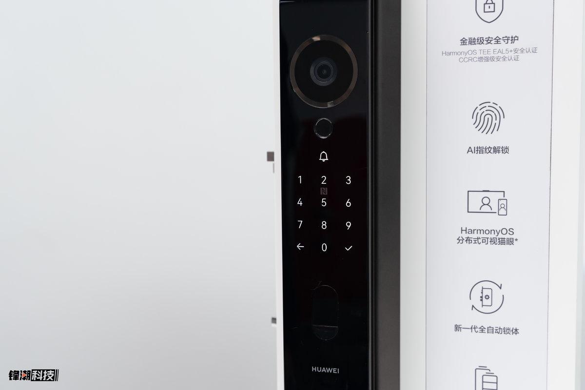 室外锁的部分,华为还在摄像头周围加入了大家已经很熟悉的星环元素,在简洁的外锁上终于加入了一些亮眼的元素,其下则以此指纹识别模组、门铃按键和密码键盘,在键盘之中还藏着 NFC 的识别区。